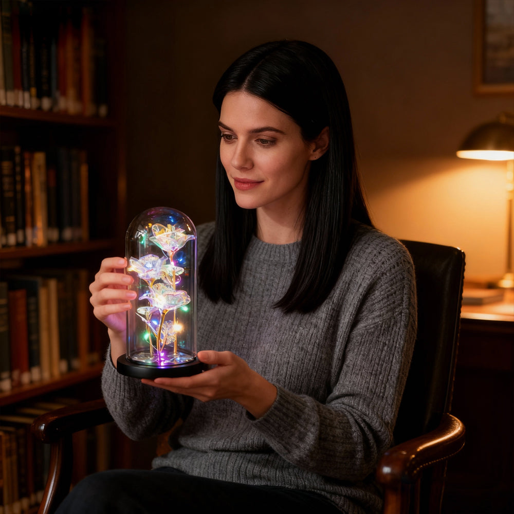 The Glass Rose is designed to be preserved forever. Unlike fresh flowers, it never wilts, allowing you to cherish its beauty and meaning for a lifetime.