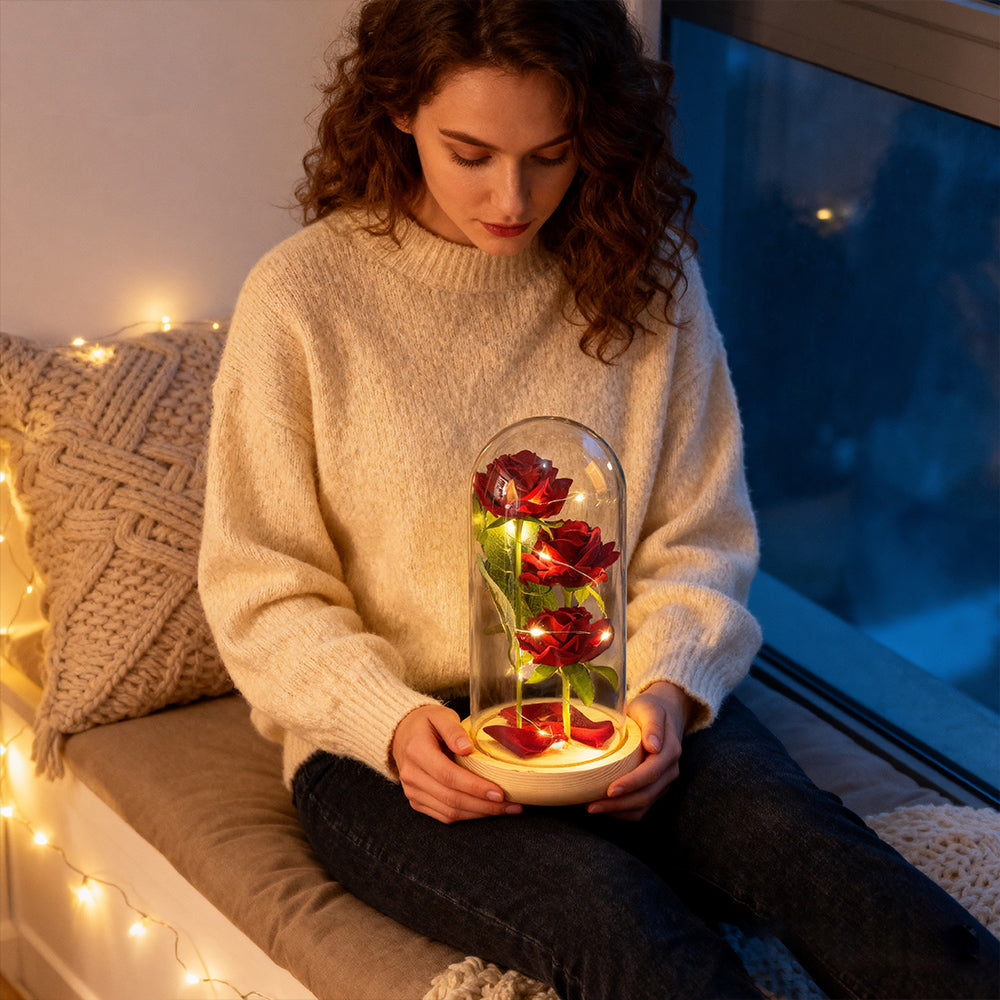 Each Glass Rose is crafted from high-quality reinforced glass, offering greater durability than ordinary glass. Still, as with any fine glasswork, it should be handled gently and protected from drops or heavy impact.
